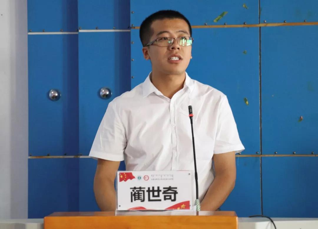 2019级新生代表李建鑫发言,他说:“作为学习马克思主义理论的学生,我们要记住三点:第一,在马言马,在马信马,学马用马,要坚持自己的初心和使命;第二,勤学笃实,对于学术研究这条路,要做到‘板凳要坐十年冷,文章不写半句空’;第三,敢于发声,努力争做一名优秀的马克思主义理论的宣讲家。”之后他带领全体新生庄严宣誓:“恪守‘献身、求实、团结、奋进’之校训,追求真理,崇尚科学,勤奋学习,勇于实践,自强不息,团结互助,为国家富强民族复兴而努力奋斗!”希望同学们信守誓言,从点滴小事做起,向身边的每一个人学习,你们的才华和智慧必将是学院一道亮丽的风景线。