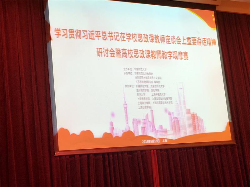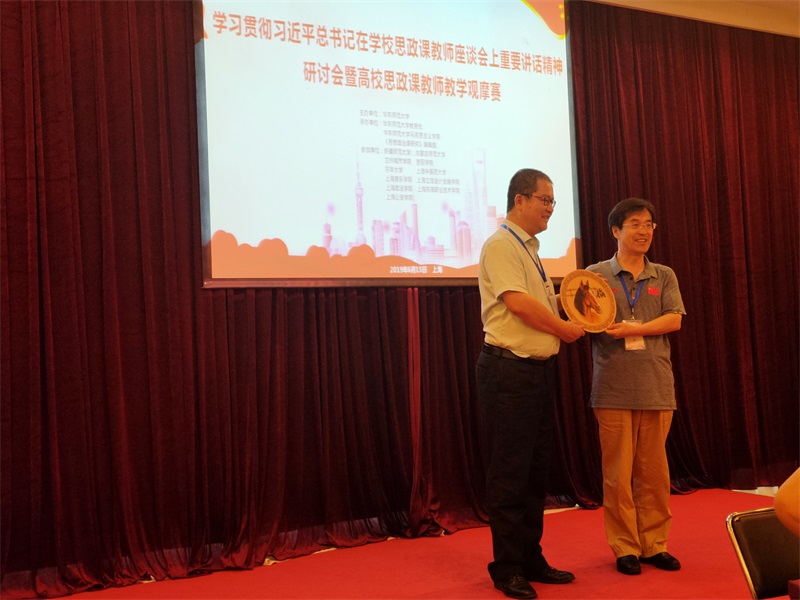 为深入学习贯彻习近平总书记在学校思想政治理论课教师座谈会上重要讲话精神,落实立德树人的根本任务,用习近平新时代中国特色社会主义思想铸魂育人,切实提高高校思政课教学质量,办好思政课。2019年6月14日到15日在上海华东师范大学举办了“学习贯彻习近平总书记在学校思政课教师座谈会上重要讲话精神研讨会暨高校思政课教师教学观摩赛”。浦京集团官网院长李春晖、党总支书记贺瑞带队参加活动。本次活动分两个阶段进行:教学观摩赛与教学研讨会。