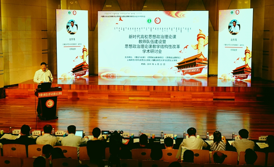6月22日上午,《马克思主义理论学科研究》、《理论与改革》和《思想政治教育研究》期刊与我校350vip浦京集团官网联合举办"内蒙古自治区高教学会思想政治理论课教学研究分会2019年年会暨新时代高校思想政治理论课教师队伍建设暨思想政治理论课教学机构性改革学术研讨会”在逸夫楼音乐厅召开。内蒙古自治区高教学会秘书长董广斌出席开幕式,350vip浦京集团官网院长李春晖主持开幕式。