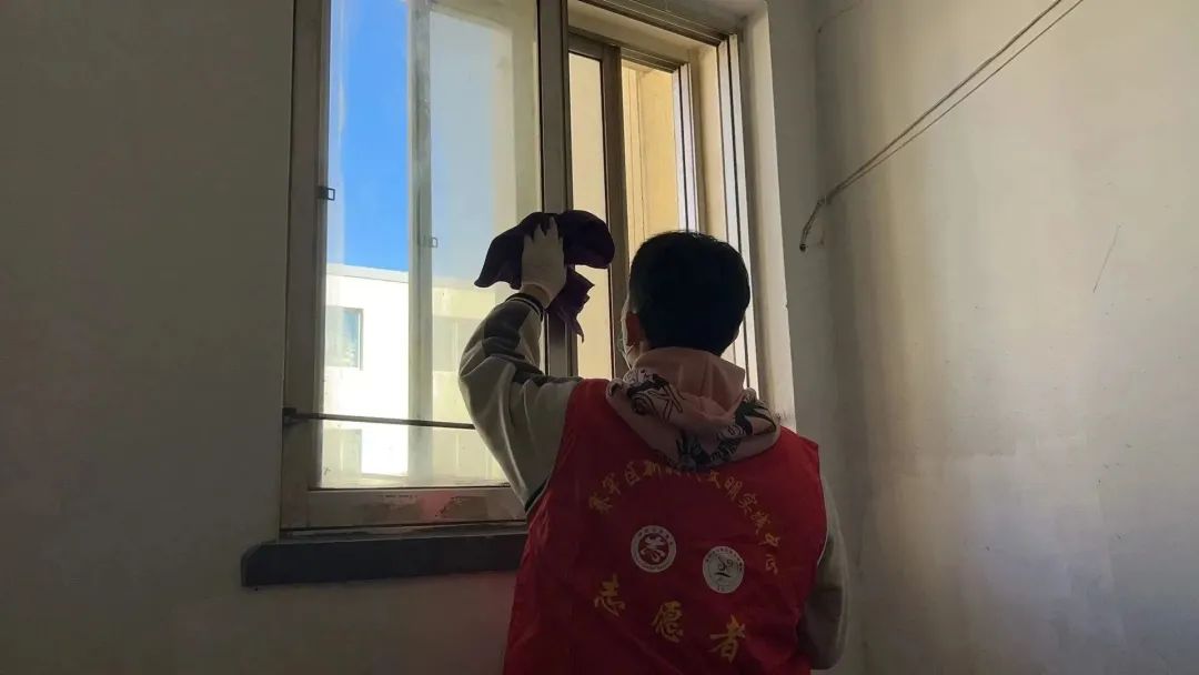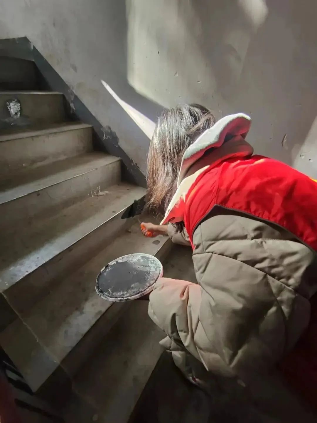 那些顽固的、尤其是楼道里面用工具也不易清理掉的小广告就刷涂料来掩盖,志愿者们还踩着梯子,将单元门顶部长时间积沉的垃圾也全部清理干净。他们不怕累、不嫌脏,不顾落在身上的涂料和满身灰尘,只希望自己的清扫工作能服务到社区居民,为居民的幸福生活贡献一份自己的力量。