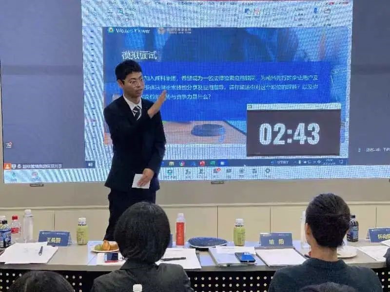 赛事第三轮为“模拟面试”(20分),六个晋级参赛队在15分钟内与现场评委进行面对面的对话,模拟应聘现场,回答评委抛出的各种问题,非常考验选手们的应变能力。我校代表队由童臻尧同学进行模拟面试,本轮环节综合排名第二。