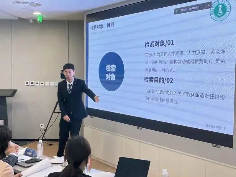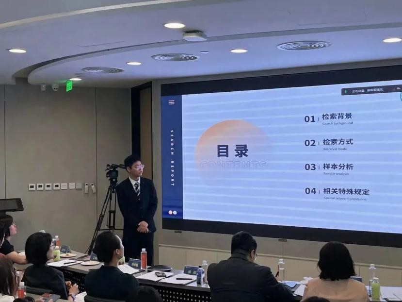 赛事第一轮为“法律成果展示”(30分),21个团队根据大赛组委会提前两周公布的题目,进行法律检索准备,并在5分钟内完成展示。评委根据选手的报告内容、PPT设计、现场讲解、检索方式等作出评分,选手根据法律检索成果展示与法律文书写作的综合得分晋级下一轮比赛。我校代表队由童臻尧同学进行演示,本轮环节综合排名第一。
